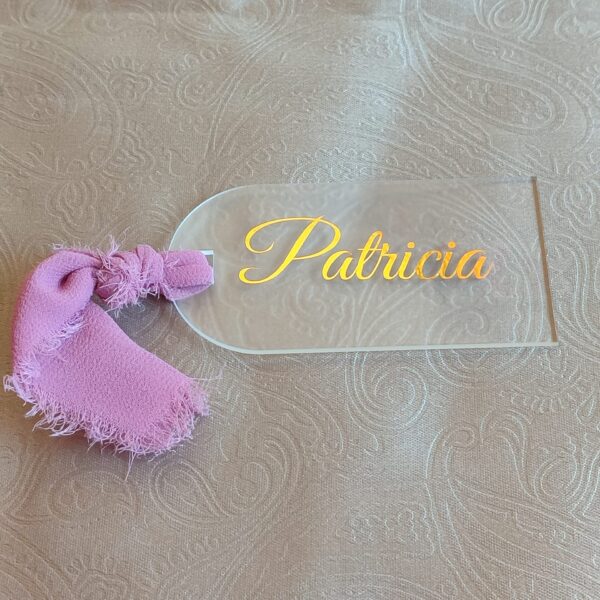 El nombre es en vinilo brillante efecto espejo. Le ponemos una capa finita de resina para que sea más duradero.