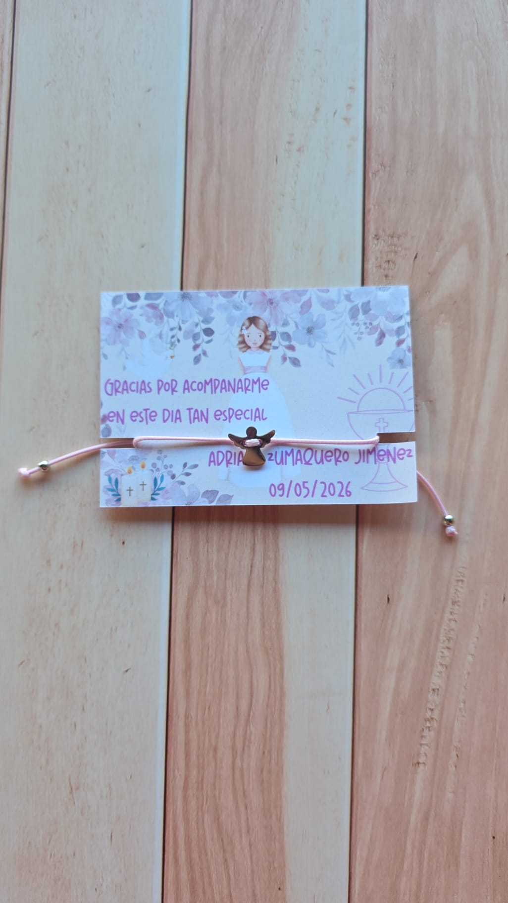 Personalizada la tarjeta con el nombre y la fecha del día de la comunión de tu peque.