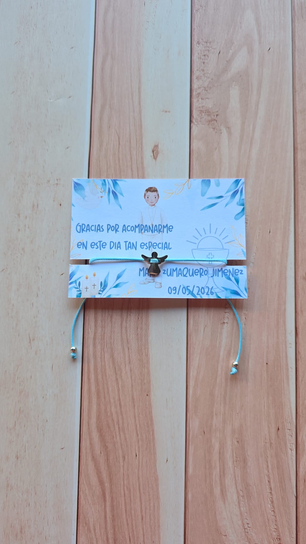 Personalizada la tarjeta con el nombre y la fecha del día de la comunión de tu peque.