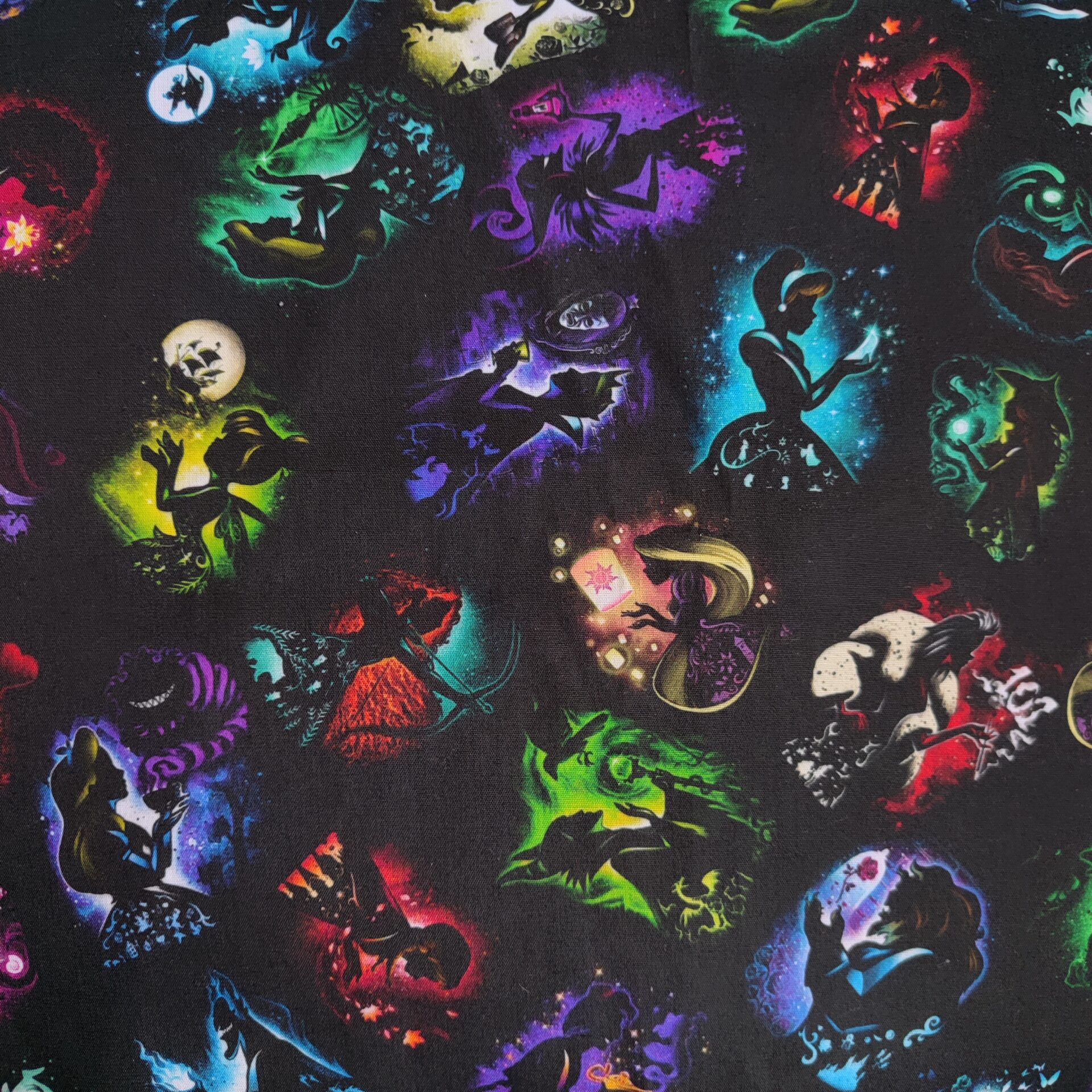 Tela decorada con las escenas de las películas de Disney. Es absolutamente hipnotizante lo bonita que es. ¿Eres amante de las películas de Disney? Esta es tu tela. Te emocionarás con cada una de las escenas ya que las reconocerás todas. Descúbrelas todas.
